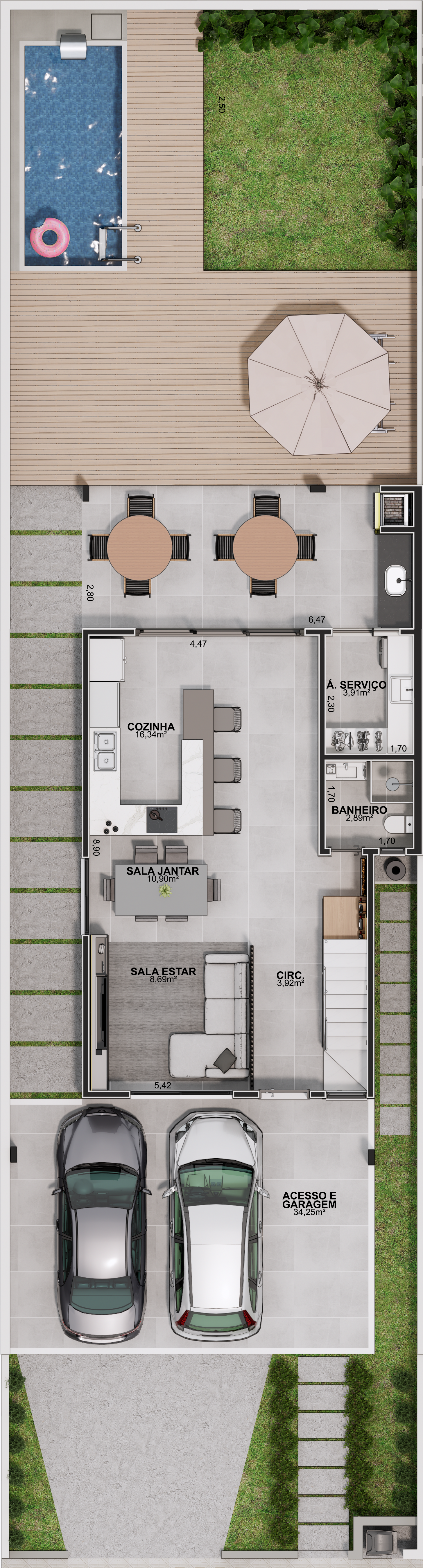 – Área coberta aberta: 18,55 m²