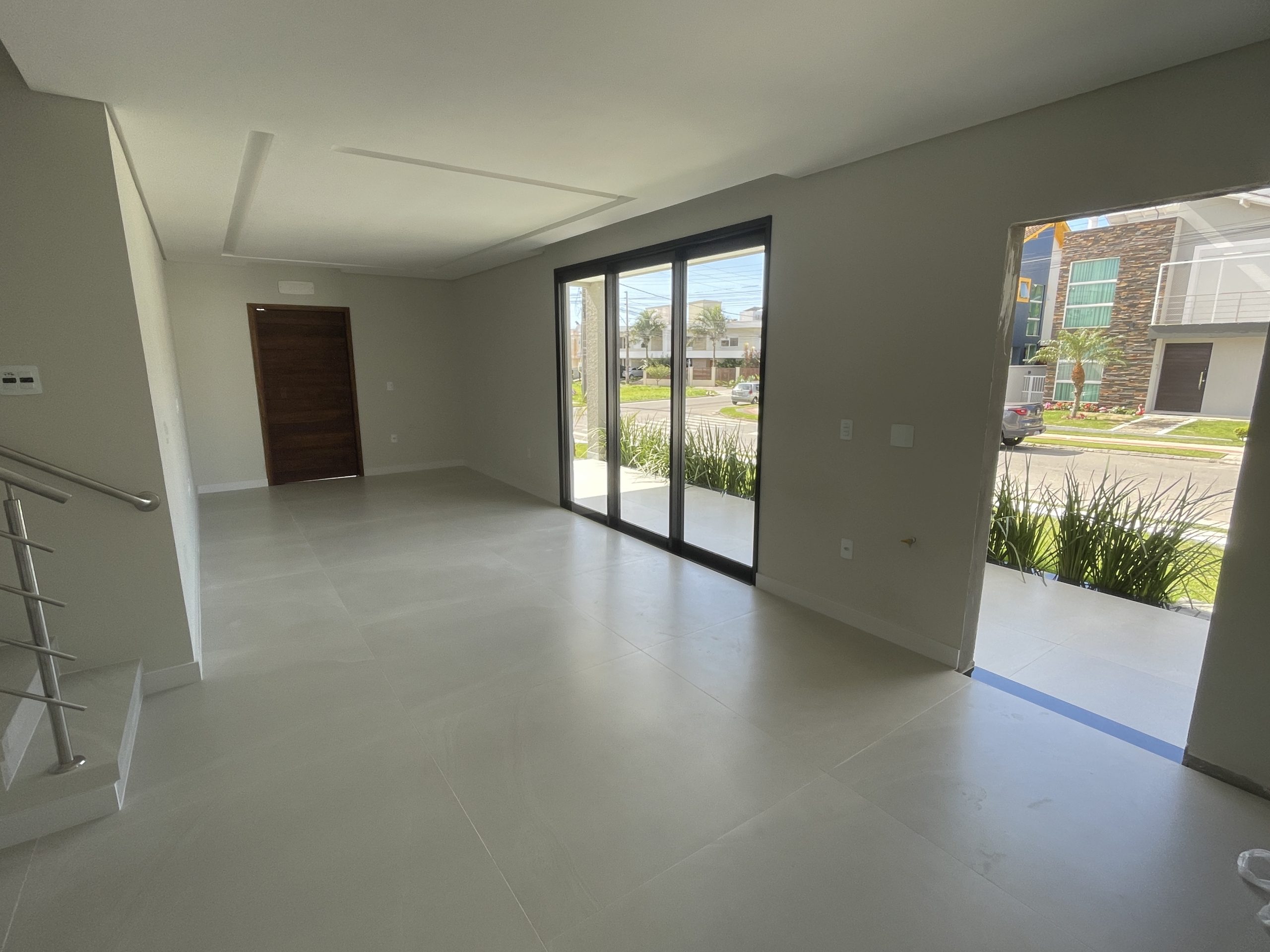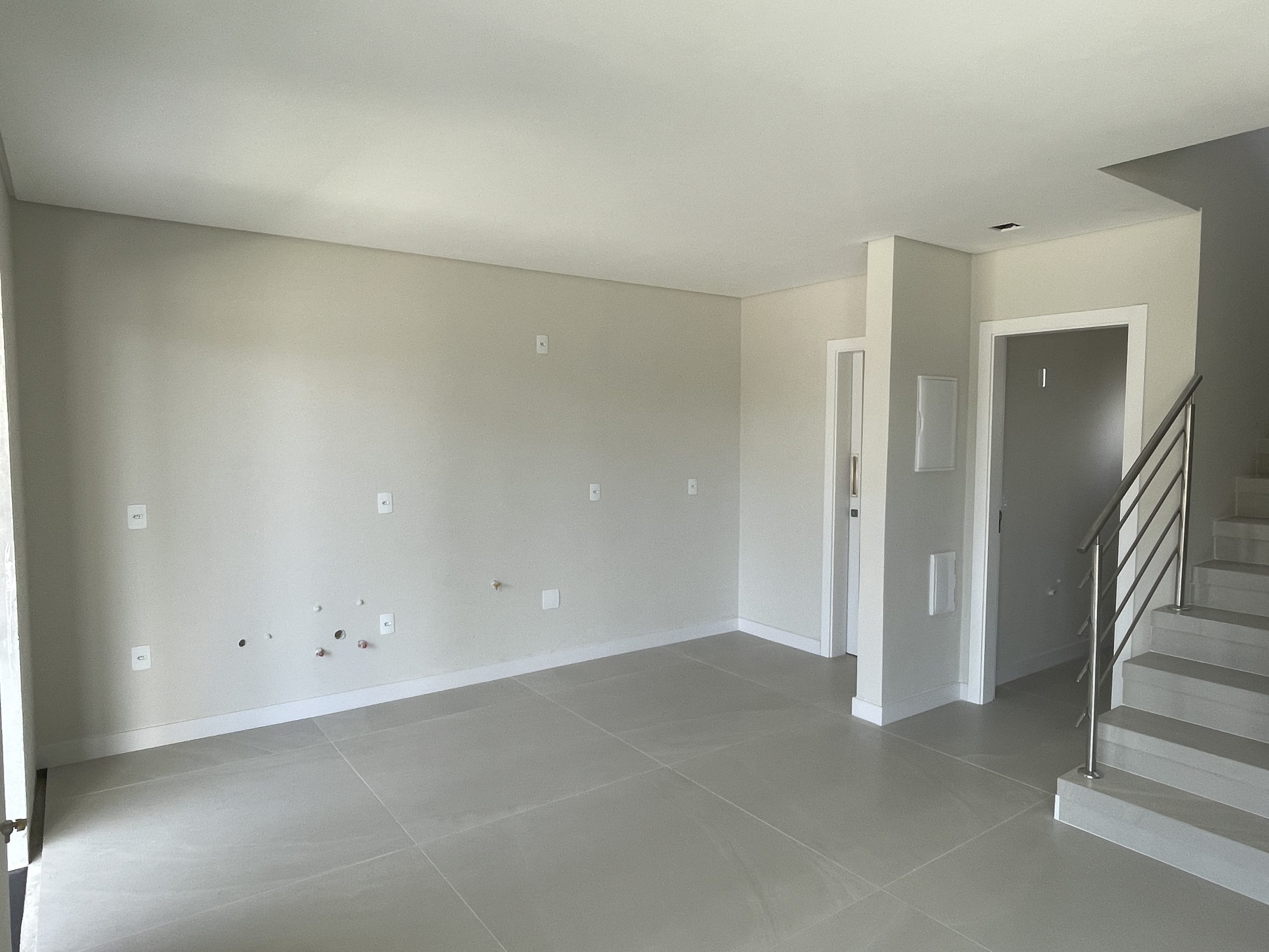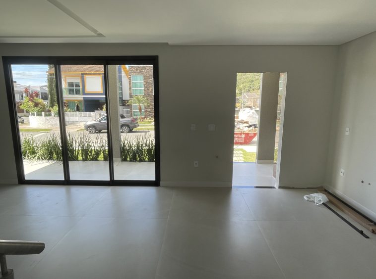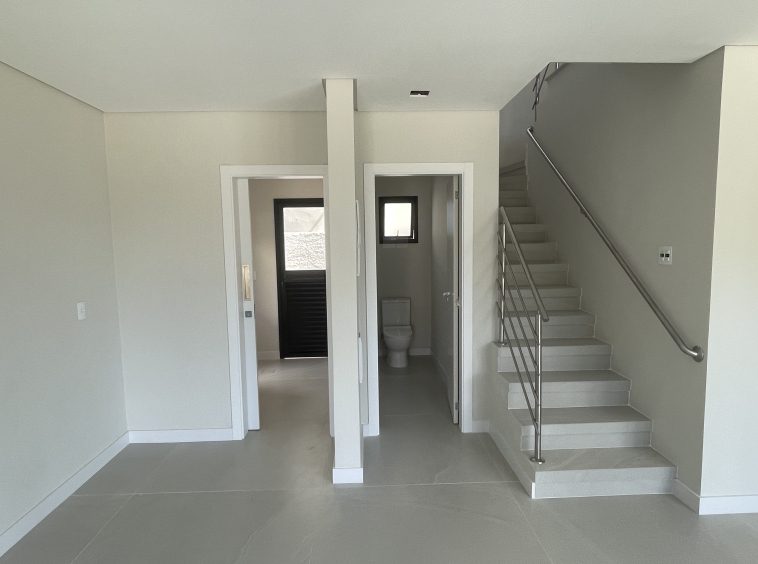 Pavimento térreo: hall, sala de estar, sala de jantar e cozinha, área de serviço/lavanderia e lavabo, duas vagas de garagem coberta, avarandado com churrasqueira.